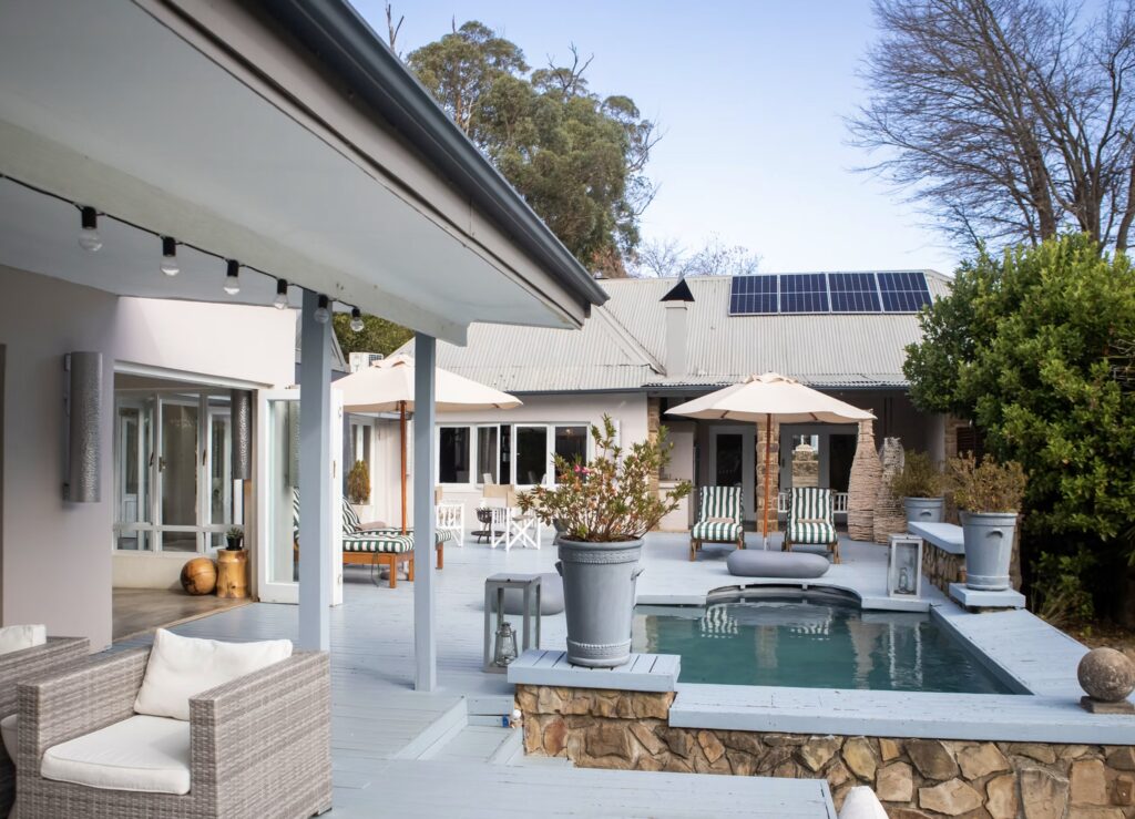 Qambathi Mountain Lodge is a boutique, off-grid lodge in the Kamberg Valley, Drakensberg, South Africa. They have five individually styled suites (Stable, Classroom, Greenhouse, etc.), a fine-dining restaurant, spa, horse outrides, and unique experiences such as a vulture hide and guided fly fishing. The lodge is set within a declared protected environment, making it a haven for biodiversity and conservation.